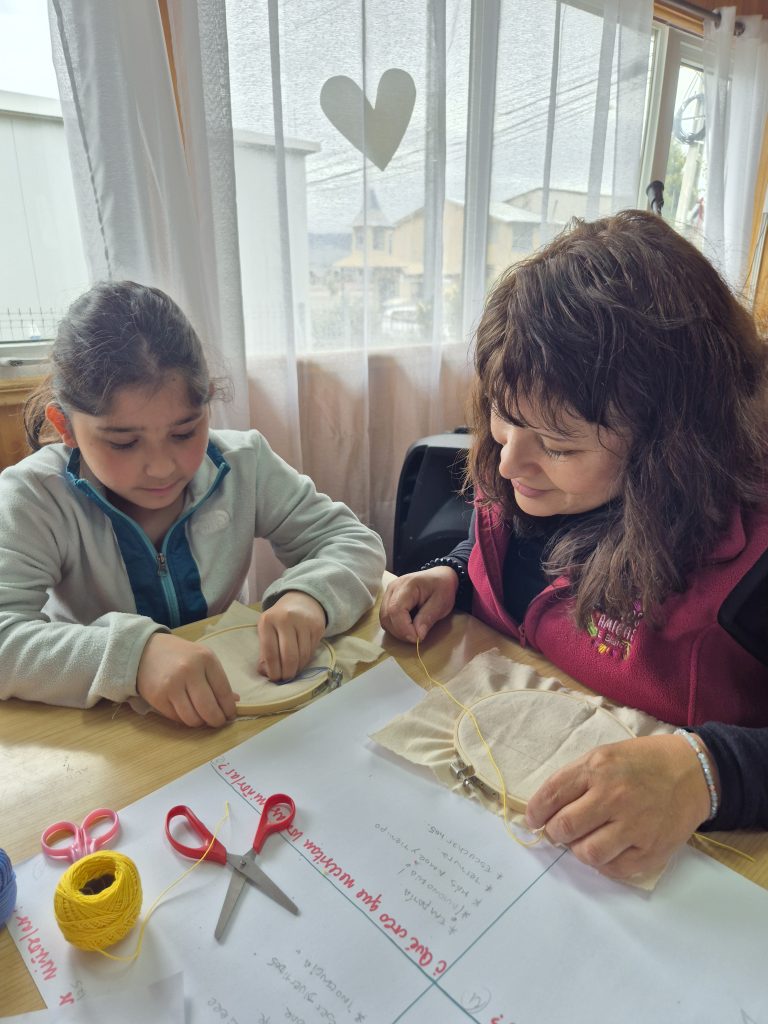 En Villa Mañihuales, una localidad rural ubicada en la comuna de Aysén, nos reunimos con las integrantes de la agrupación de artesanas y los estudiantes del Liceo y dimos vida a este proceso de creación y bordado intergeneracional. Transferencia no solo de saberes y oficios, sino sobre todo de experiencias de vida.