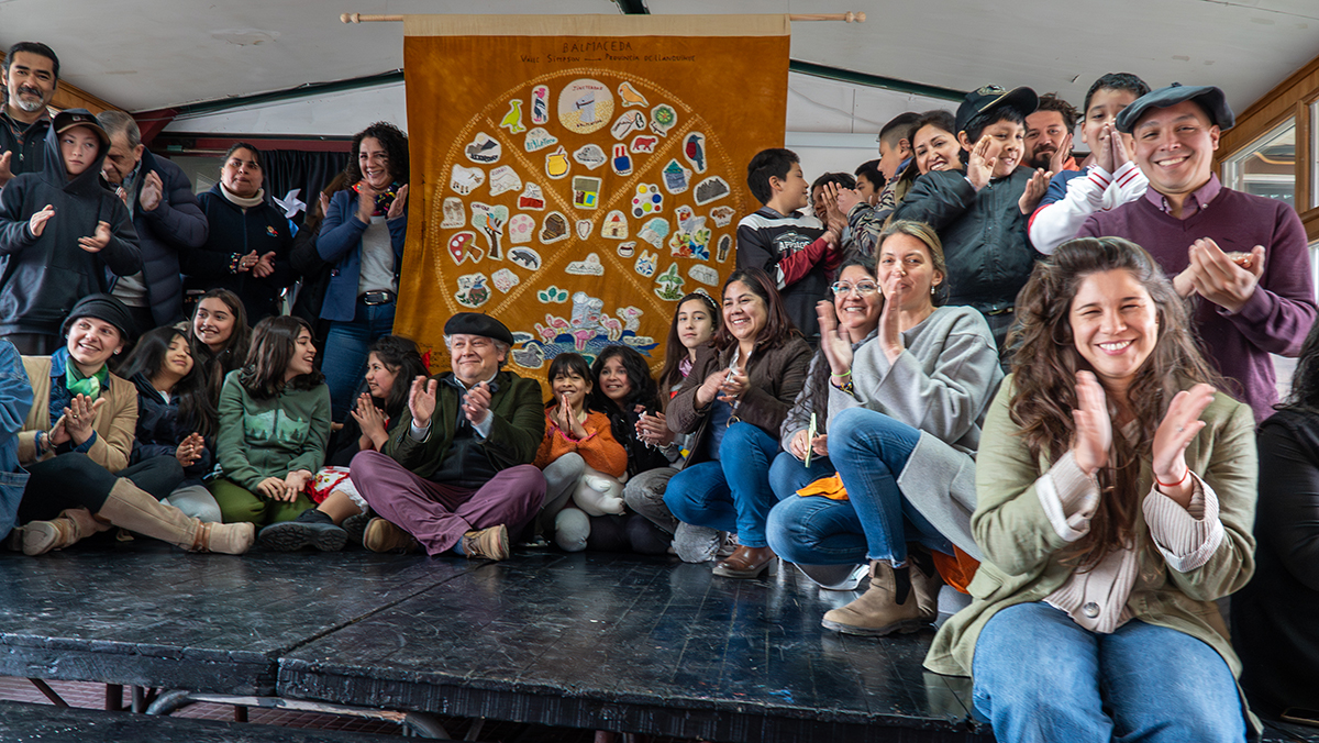 Puntadas de viento, memoria y comunidad. Un tapiz es siempre más que hilos entrelazados: es memoria que se hilvana, afectos que se anudan, territorio que se sueña. En Balmaceda, estudiantes, docentes, apoderadas y artesanas se reunieron para bordar, coser y dar vida a una obra textil en la que cada puntada fue un gesto compartido; conversaciones transformadas en tela y colores.