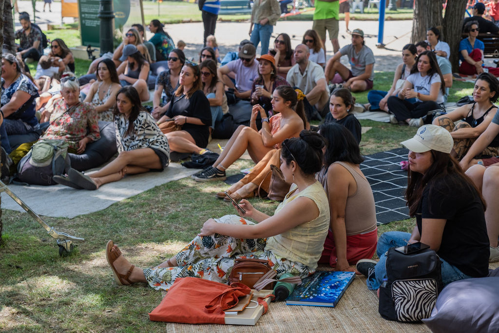 El festival también fue espacio para conectar con cientos de personas a través del stand de Pulso Austral, donde visitantes pudieron llevarse su kit de bordado, fotografiarse junto al río tejido en plena primavera santiaguina y conocer de cerca el trabajo de Pulso Austral junto a comunidades australes.